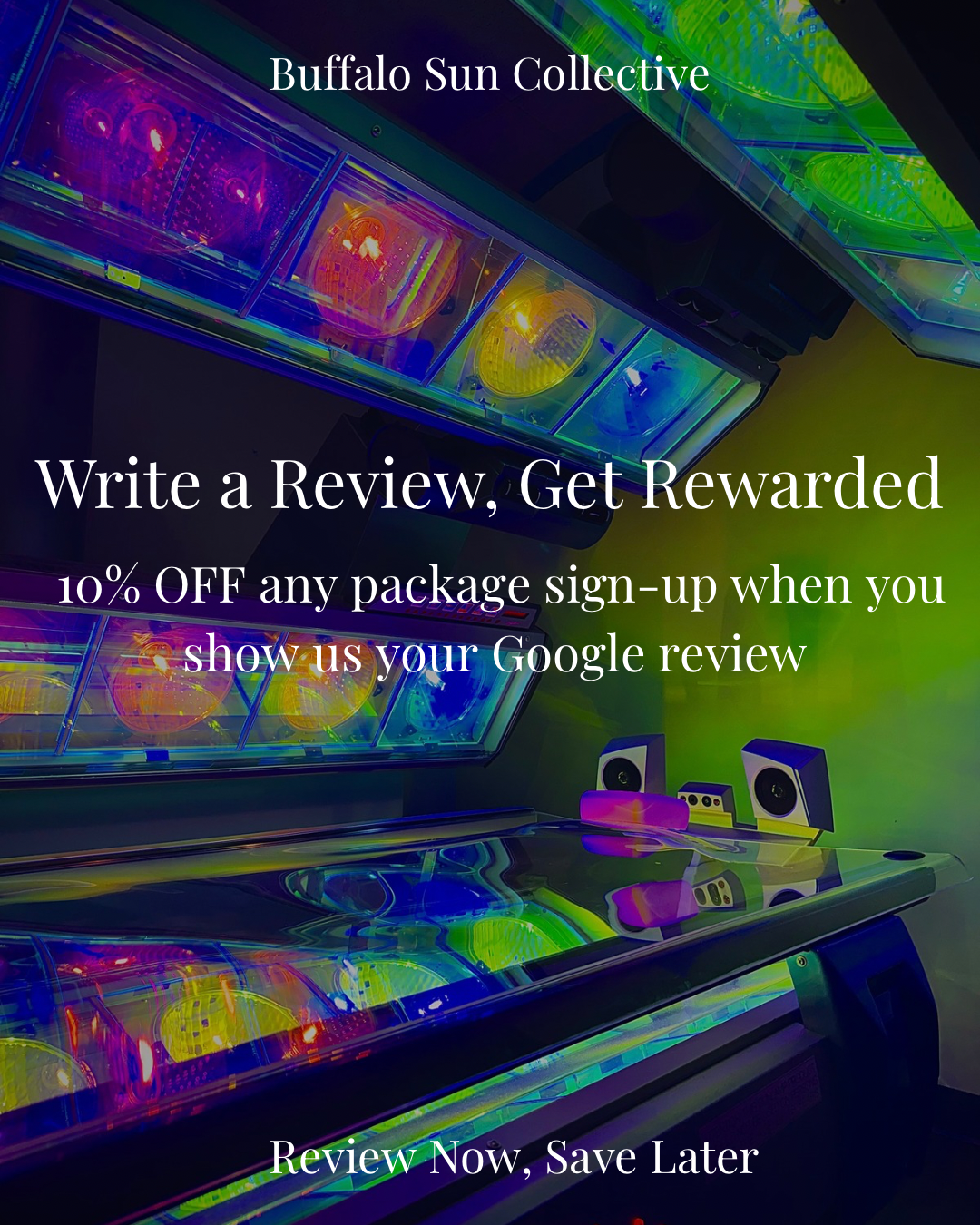 Specials ☆ Specials ☆ Specials ☆ Limited Time Only All College Students Receive 10% OFF Packages with Proof of Student ID Write Us a Google Review and Get Rewarded! 10% OFF ANY PACKAGE!Applicable to UV, Spray, and Red Light packages